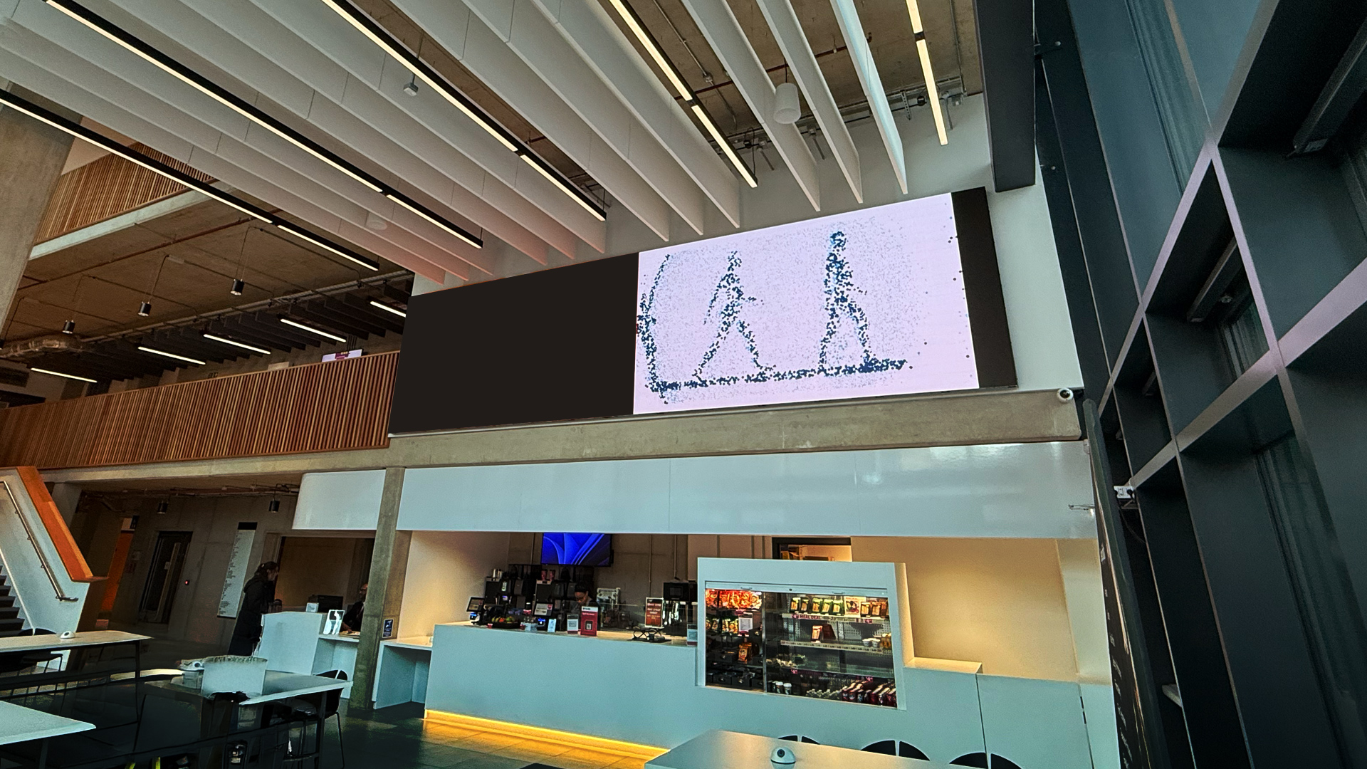 This artwork animates dynamically, with particles in constant flux: moving and expanding to bring form to walking human figures. As with the world around us — particles and energy are slowly moving from one form to another; whilst this happens in and around us we experience a sense of continuity in our bodies.